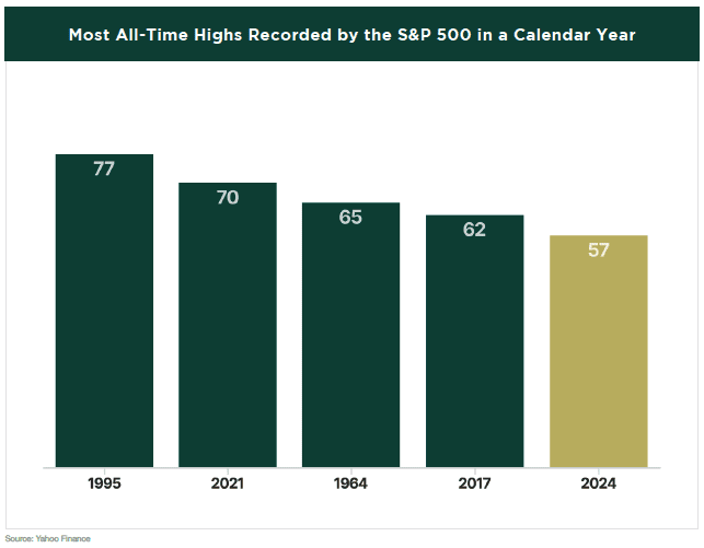 IT WAS A RECORD-SETTING YEAR on Wall Street, with the S&P 500 securing 57 records to land in the top five years for most all-time highs recorded by the benchmark index.